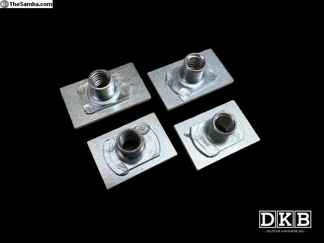 Professionally crafted from 2.0mm sheet metal they are an exact match to the original. Original style 8mm thread weld nuts are carefully spot welded to the main tab.