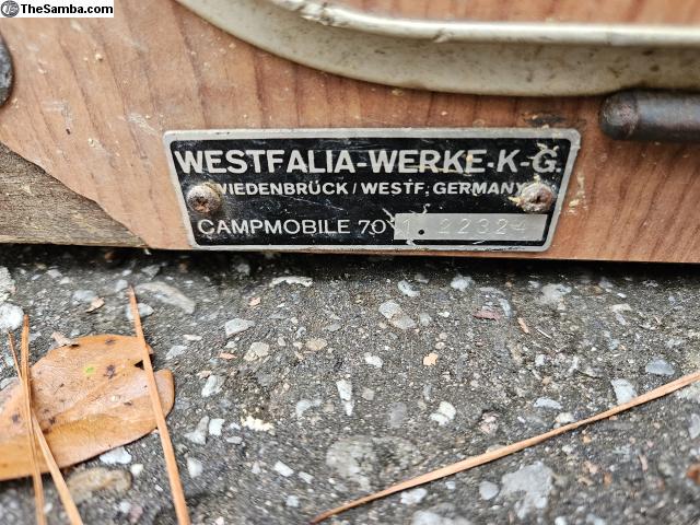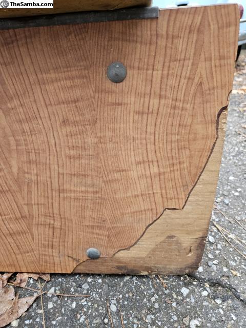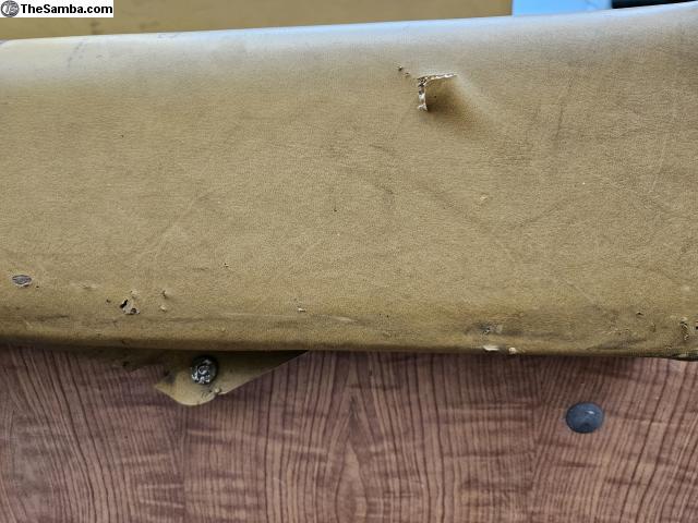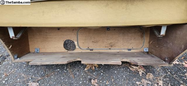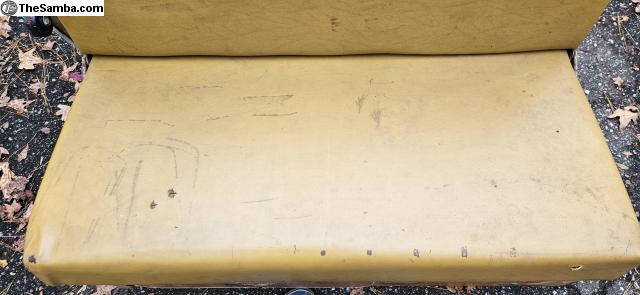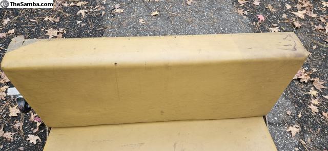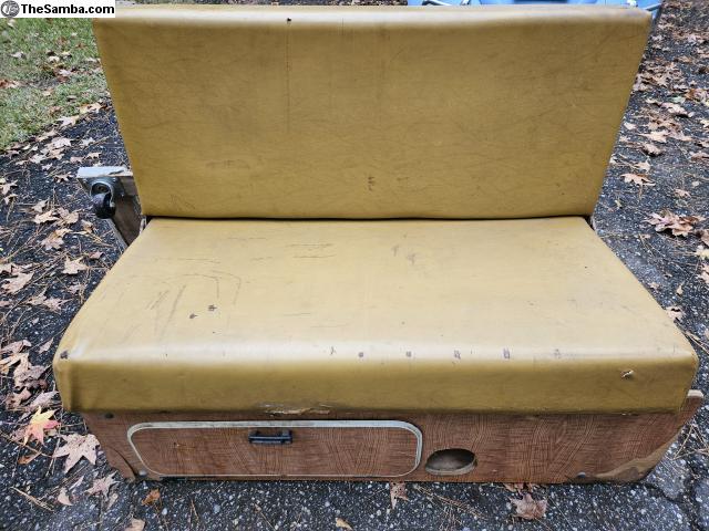 Rear Z bed from a bay window camper. Cover has some tears, facia of wood is missing in a couple places, and someone was nice enough to cut a speaker hole in the front face. Otherwise, a perfectly functional Z bed for your VW bus.