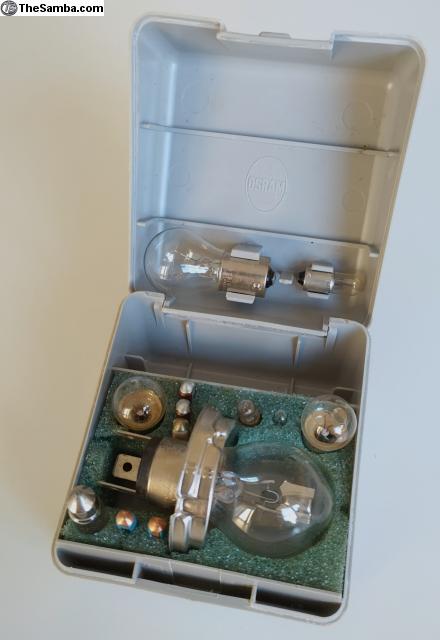 Very nice OSRAM spare bulb box / repair kit + content. The box is in good condition, without cracks or damage. The original foam insert is intact (rare). Each bulb is from the Osram brand. Nice accessory for the glove box of your Karmann Ghia or for the display cabinet at home.
