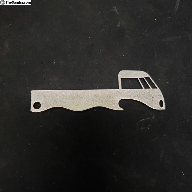 304 stainless steel, 3” long, 3mm thick. Solid, functional, and shaped like your favorite VW split window.