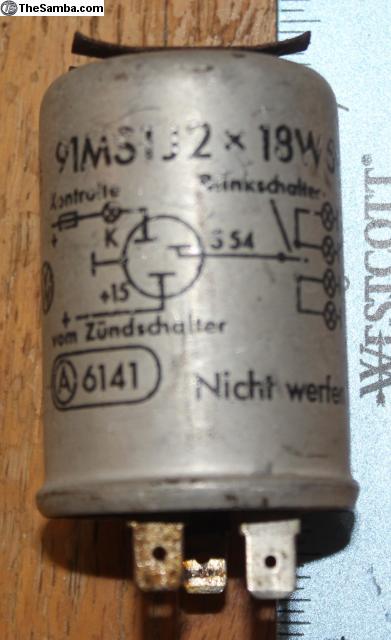 This is an original Hella 6 volt Flasher & Emergency Light relay. It is part J1 in most VW bug wiring diagrams. it has 3 prongs. It may also be used in other types. It is in used/good condition. It is untested.