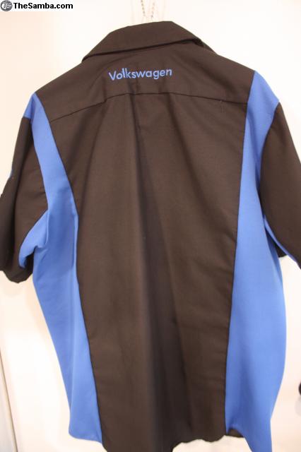 I have 2 very nice VW mechanic service shop shirts. The shirt is used but in excellent condition. The shirt has been washed and is clean. It is made by Red Kap. The size is L Regular. These shirts have an extra VW patch in the front.