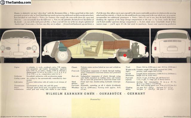1956 6 Page Karmann Ghia Sales Brochure 1st Year Price: $100 Shipped