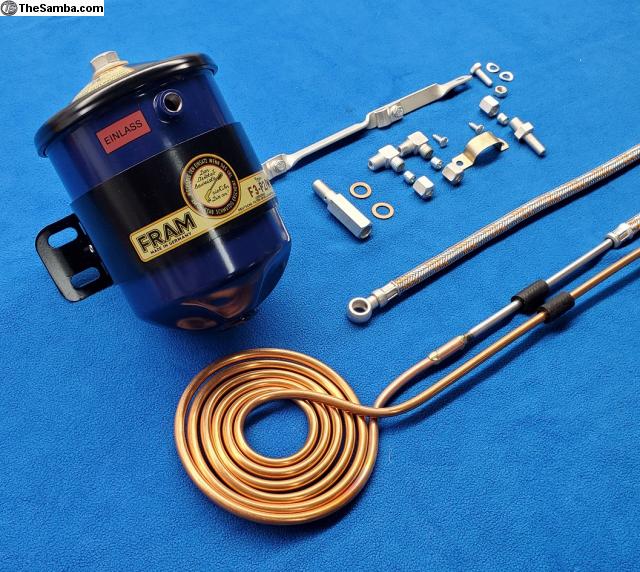 These lines are for the filter only if you are NOT using the spiral oil cooler. They are the CORRECT diameter and length if your filter is mounted as per Okrasa specs. Genuine "Made in Germany" 6mm steel braided Cohline hose, compression ferrels and tubing. You can see in the photos that they fit nice with no unusual bends. Price for (2) lines: $149