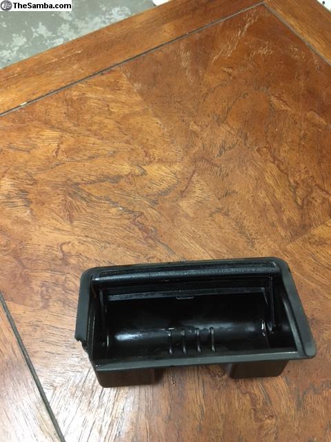 1980 onward vw vanagon ashtray in black .would be perfect condition except for the chipped left corner. still very nice and perfectly functional. $10.00 plus shipping
