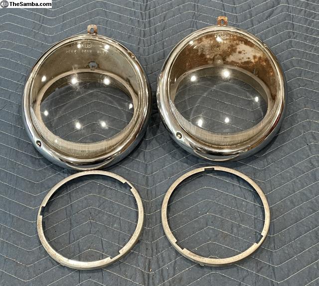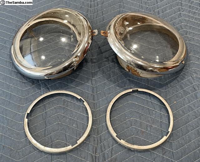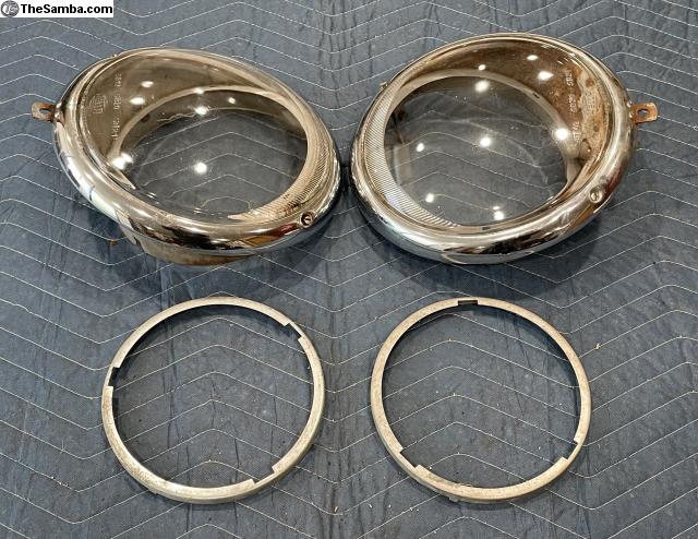 Here is an original pair of 1964-67 Bus headlights. Both lenses say Hella SB19 SB20 SB21. Both lenses have scratches.