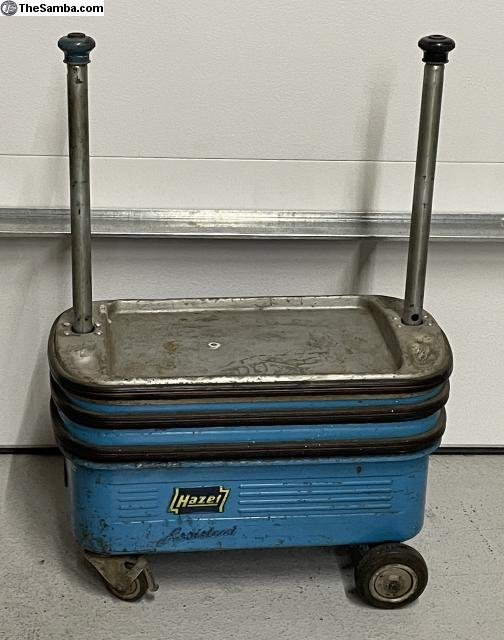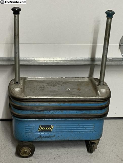 Here is a nice original 1964 & older Hazet Assistent 162 small "a" logo tool cart. Overall in very good condition. The Blue is all original. The silver on the top tray has been repainted at some point. No cancer rust. No major dents. Lifts up & down. Rolls good.