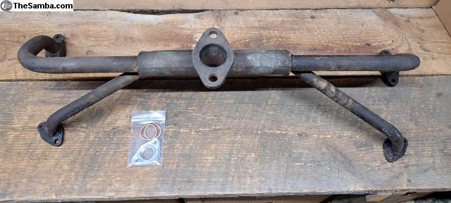 This is an original, unrestored jacketed K manifold. The heat riser legs are ROCK solid and not loose in the jacket. I hammered the right side one (it usually gets paper thin and rusts out first) and it is very solid. Very rare to find this intake in this condition. This is the later version of this intake with pressed on endcastings (not brazed) and no VW logo on the jacket. Comes with a new set of gaskets.
