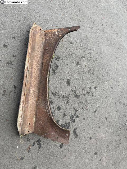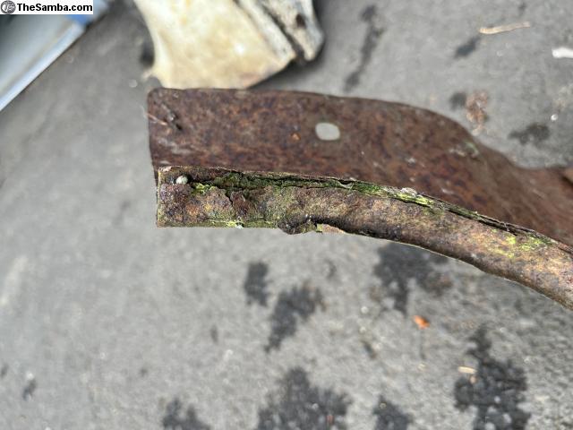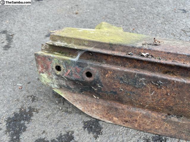 Early bay rear apron (has 4 holes). Pretty rusted in some spots, does have a couple rough patches but they don't pickup so well on camera. A nice date with a sandblaster or grinder would get you back in motion just fine.