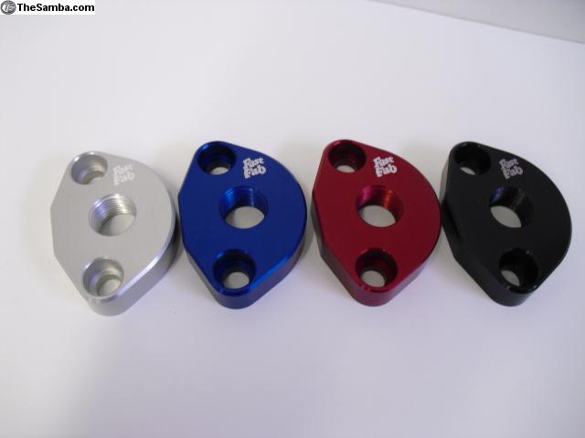 Fuel Pump Block Off With Breather or without. Made in USA. These CNC machined fuel pump block offs are made from billet aluminum. With breather type have a 3/8 NPT threaded opening. They are finished in anodized colors and laser etched for long lasting good looks. a very clean look to complete your motor. MADE IN USA!