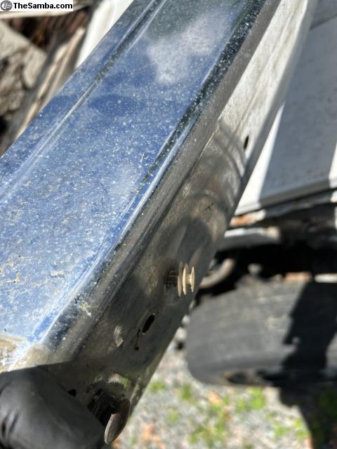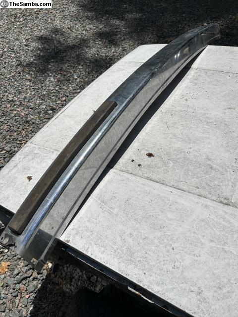 For sale is a used original Vanagon steel chrome front bumper with one rub strip. Needs a little straightening mainly on the lower edge but will clean up decent. Removed from a '87 model. $45 plus shipping, send your zip for a quote. If you see this ad we have it. Check out our other ads for more great stuff. Contact info below.