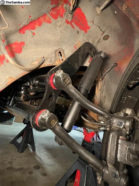 The red '65 in the pictures is running this kit, with 4.5, and 5.5" Empi Fuchs. Tires are 165/65/15 front, and 205/65/15 rears.