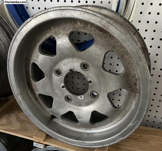 This style wheel was manufactured under different names over the years including Dan Gurney, Prespec and others. This set has no markings whatsoever.
