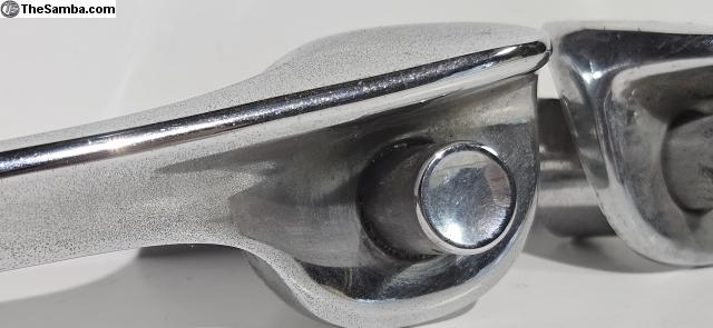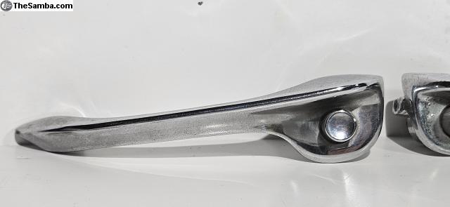 Pair of 1962-1967 type 3 Door handles. Both handles are far from perfect but are functional. In the pics you can see where I superficially cleaned them and what they can look like with some more overall cleaning. I can provide hi res photos if interested.