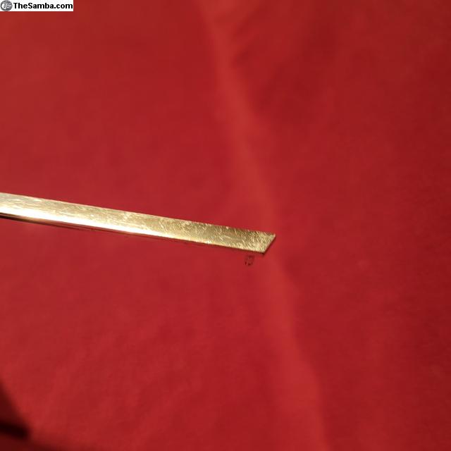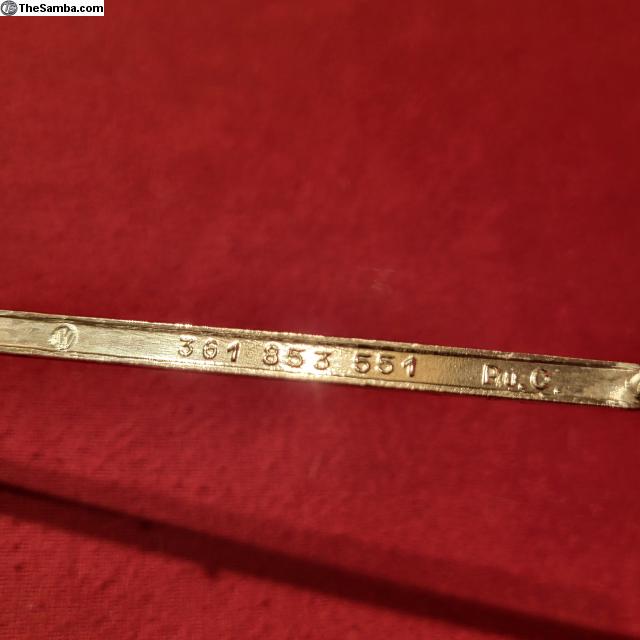 Hello. Here is a rear hatch trim line for Type 3 Squarebacks, 1966-1969 model years. All three mounting pegs in great shape and some scratches as shown. Manufacturer stamp "PuC", VW roundel, and part number 361-853-551 present on back. $30 shipped to USA cities.