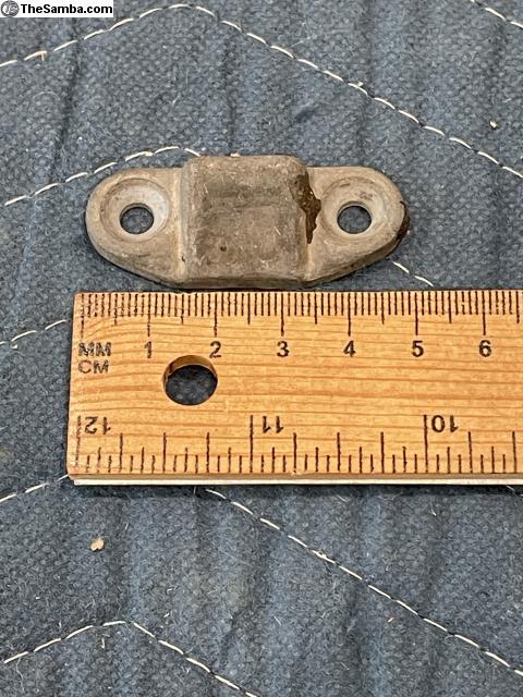 Here is an original rear hatch bumper guide for 1964-79 Bus. This attaches to the body on either side of the rear hatch.