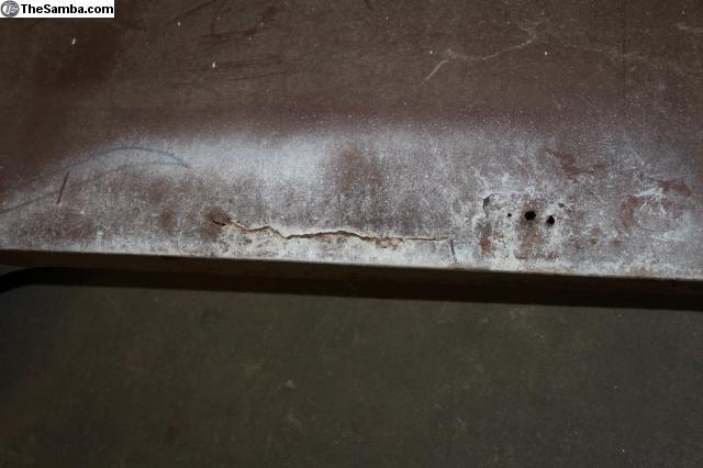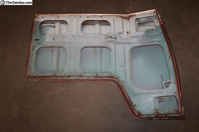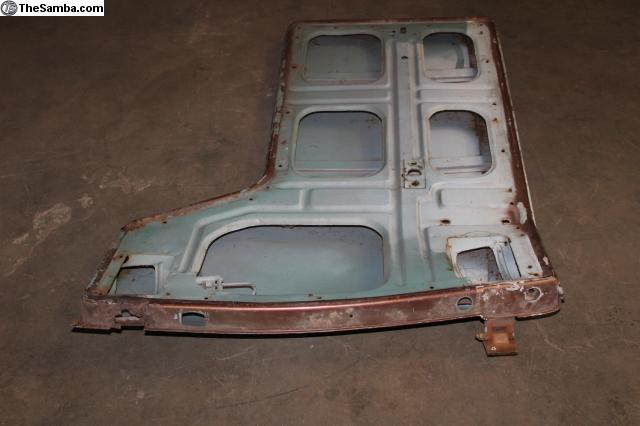 Here is a nice Left side front door for 1964-67 Bus. Has light cancer rust. No major dents. Top hinge area is nice & strong. Bottom hinge is missing.