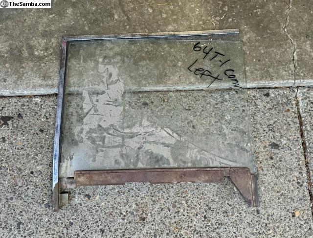 From a 64 - left side door glass and frame. Frame should bend back when you replace the seal. Good glass lift, etc. super hard to find