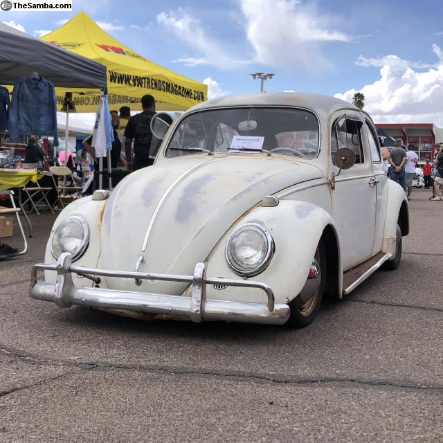 Original paint (pearl white) 64 bug. Runs and drives, all numbers matching car. Nice interior grey with white piping and oatmeal color carpet. Have original front beam drum to drum to go with it as well. Has narrowed adjustable beam with drop spindles up front and drop plates in the rear. Dry AZ car with clean title. $10,500 thanks. Charlie 928-245-168two
