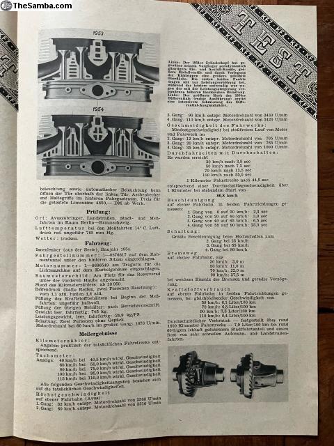 4 page special print from the magazine “Kfz Fachblatt” testing the 1954 Volkswagen beetle.