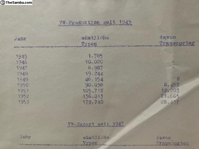 Comes with a typed letter with production and export figures from 1945-1953 plus the number of employees at the Volkswagen factory.