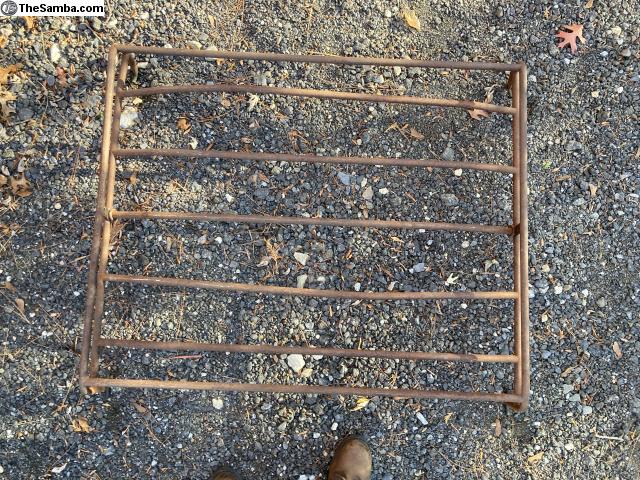 I believe this one has the longer legs to accommodate a rag top, let me know if you need measurements or other photos. All covered in surface rust but is totally solid. Perfect for a patina car or blast and paint it. No clamps.