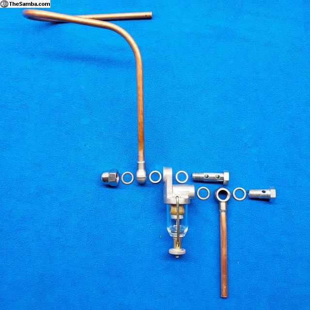 This fuel filter kit is made up for use on 8mm (25hp / flat top) fuel pumps and can be used with later Solex 28 PCI carburetors with adapter fitting at fuel inlet without modifications. I will be making these for later (1954 on up) 6mm fuel pumps. Price: $395. If you have questions, email me at: [email protected] Cheers.