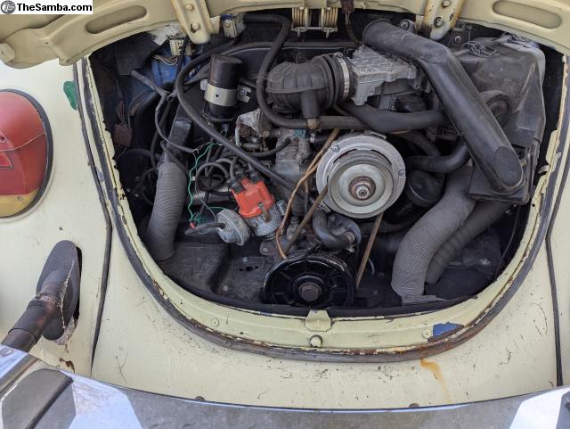 Full disclosure, I bought this as a project with the intention of fully restoring it to its original color and go thru and clean up the motor, including replacing the main seal and clutch. End play is fine when checking it by hand by pushing/pulling on the crankshaft pulley. But life simply got in the way of my ambitions. The cliche [b]"It ran" when I parked it[/b] 2 years ago is literally true in this case, I drove it around town quite a bit that summer. I parked it to work on restoring my '74 Super and daily-drove my '73 Super. IT DOES START but will not idle. The injectors should be pulled and cleaned and I'm guessing the gas tank pulled and cleaned after sitting for 2 years. Here's a video of it starting up recently: