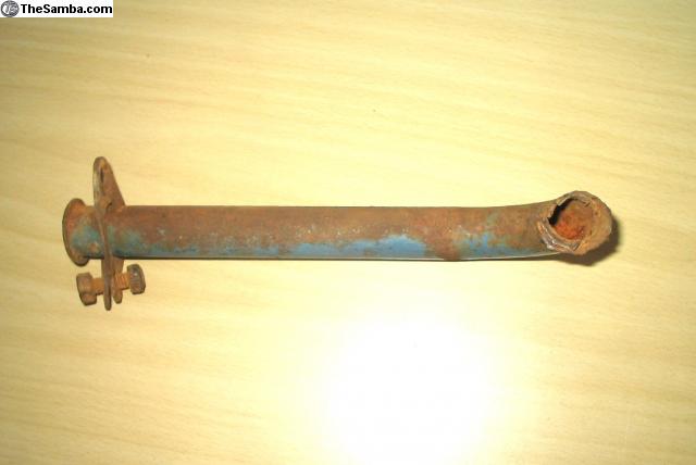 Here is a nice original headlight wire conduit tube for bug 1959 and earlier, still has most of the original L434 fjord blue paint, some light surface rust, includes the original flange and one of the bolts nut and washer, $15 shipped within the USA. Thanks for looking and please check out my other ads.
