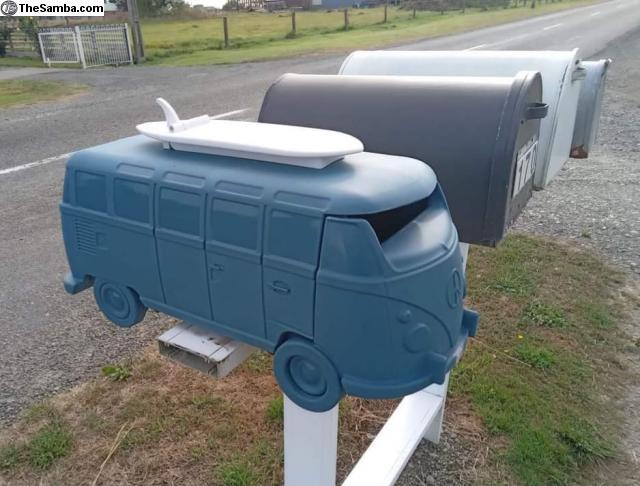 A face only the postman could love... but the ultimate letterbox for the VW Bus fan! Made from durable HDPE plastic - this bad boy won't rust even if you live on the coast. Flip up surfboard flag, available in red, white or blue.