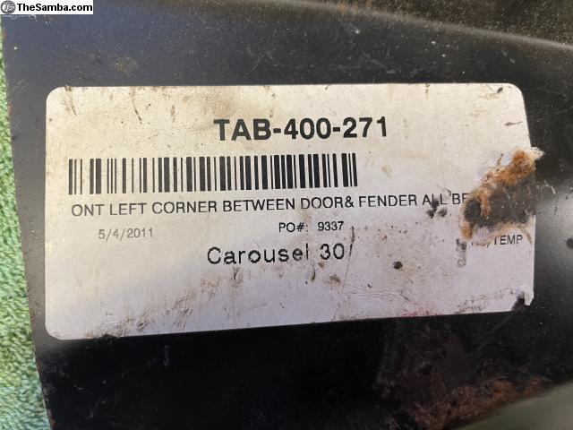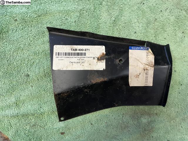 TAB 400-271, Left corner repair panel in Good condition. Fits between door/fender, front left wheelhouse - lower rear corner.