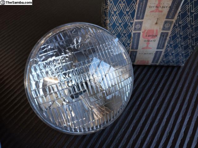 I am in search for 1 sealed beam unit 12V version with VW article number 111 941 261A, identical to the NOS one in these pictures. The headlight unit was made by manufacturer General Electric (GE) for Volkswagen. It has the large GE logo in the center of the glass (see photo 3). If you have one - unused with or without original box - and want to sell it, please contact me. Thx in advance...!
