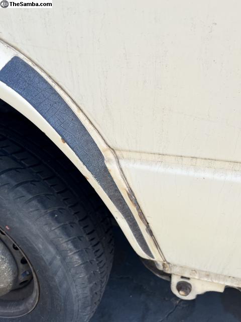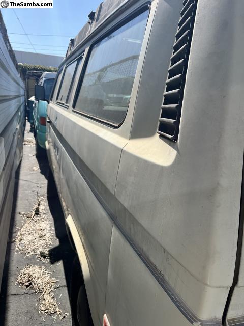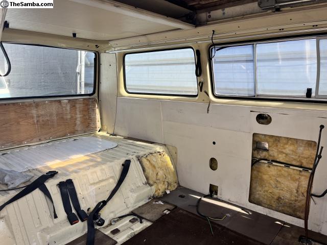 Some rust remediation and a fresh coat of paint are needed. The body has a slight ding over one wheel well. We have the complete Westfalia camper interior ready for reinstallation at extra cost. We can help with installing these items if needed.