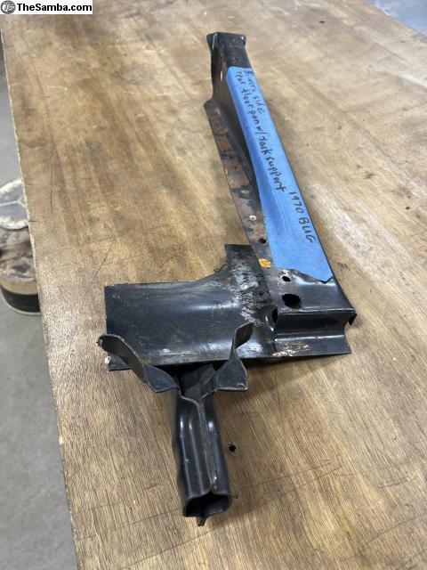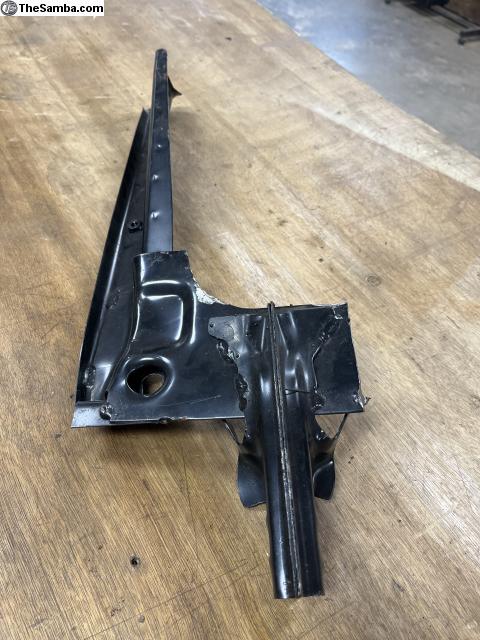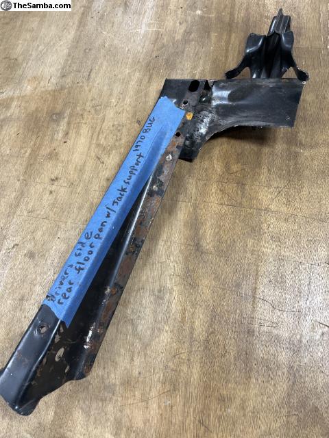 This is the rear section that was cut off a drivers side floor pan.It has the jack support on it.Its good clean metal to patch with.Price does not include shipping.Thanks for looking!