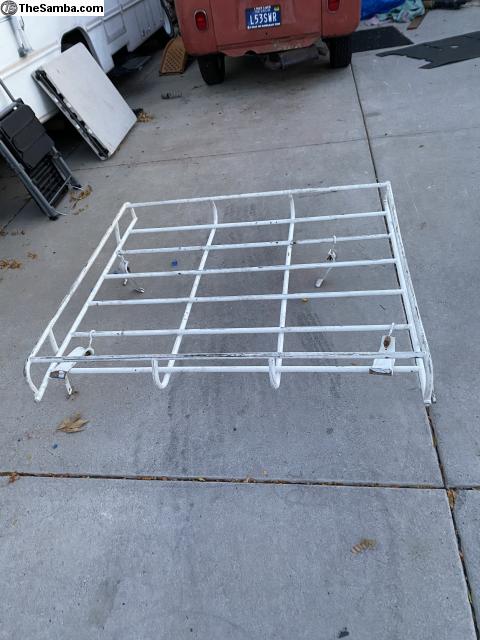 Up for sale my original zvw roof rack it’s got all 4 clamps, unfortunately no sticker as it appears to have been painted before my ownership. Perfect for a double cab. I had it in a few split window buses and it also works for bay window. Rack is perfect for a patina bus I had it in a double cab and it looked amazing. Hit me up If interested. Located in Reno Nevada. Will ship at buyers expense. Buyer arranges shipping! Asking $800. Plus shipping.
