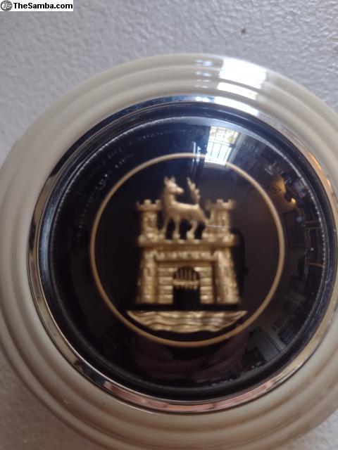 Nice orig Oct 52-55 Deluxe horn button. Housing refinished in light beige.
