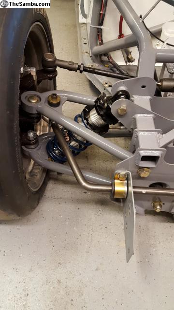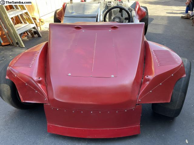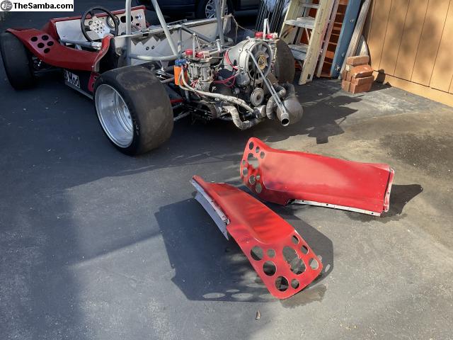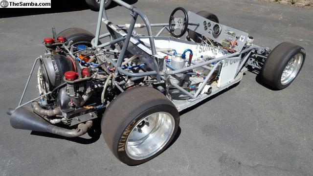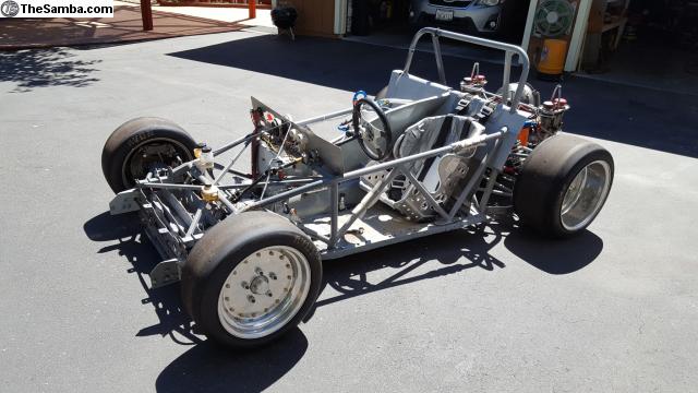 Complete race car, A-arm coil over front suspension with a ford escort rack and pinion, rear suspension is a custom parallel bottom links. Custom made up rights using porsche 944 stub axles and bearings. Custom front and rear swaybars. Extra wheels,with tires, pedal assembly with balance bar. Custom aluminum seat.and custom front & rear wings.