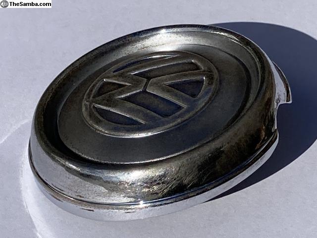 This is a good original low light nose badge. There are some scratches and the chrome is thin in places. Both mounting pins are intact and solid. $135 plus shipping