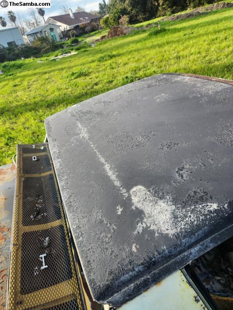 The Nasty black paint is flaking off all over the car, car is originally yellow.