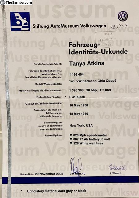 *Birth Certificate From Volkswagen included and confirms that original engine number