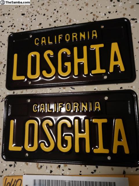 I bought these for a Ghia project and never used them. I am the owner of the plates and they can be signed over to you the new owner for use on you car or hang them in your shop. LOSGHIA translates into "The Ghia." These are brand new, never installed.