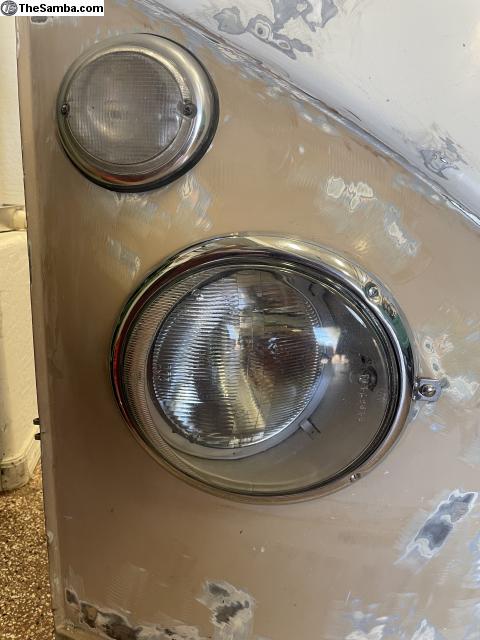 Includes everything pictured at full price - nearly untouched dash, rebuilt headlights with new 12v bulbs, repainted front emblem, fried egg turn signal bulb holders and a lens.