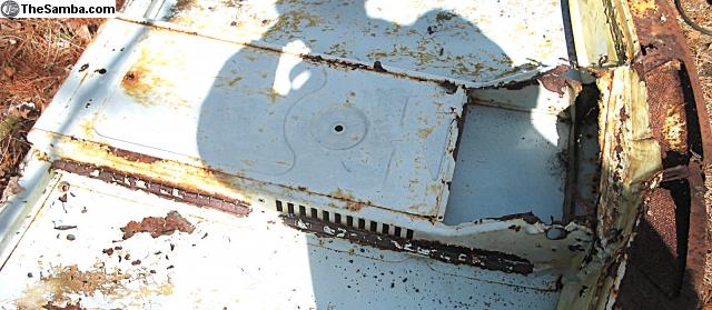 Here is a 58-67 bus fresh air box, this one is from a 62, the very front lower part of it is rusty, $40 + shipping, will cut out as needed as it is still in the front portion of the roof clip. Thanks for looking and please check out my other ads.
