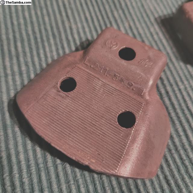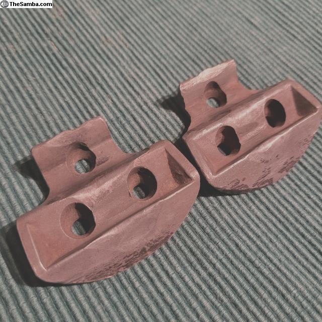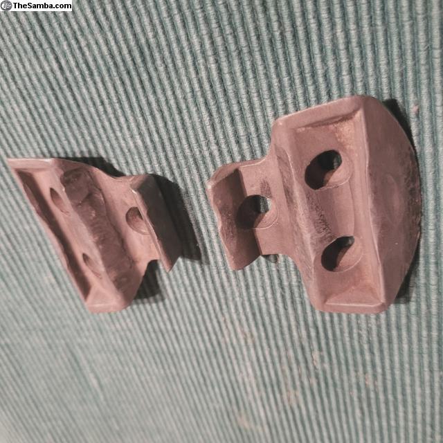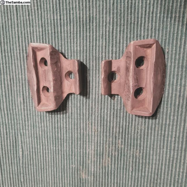 Here is a mix-matched pair of door strikers for up to 1955 Type 1 bug. Wear as shown, but unbroken. One has "Huf" and "VW" stamps present and one has no markings that I could find. $40 for the pair shipped to USA cities.