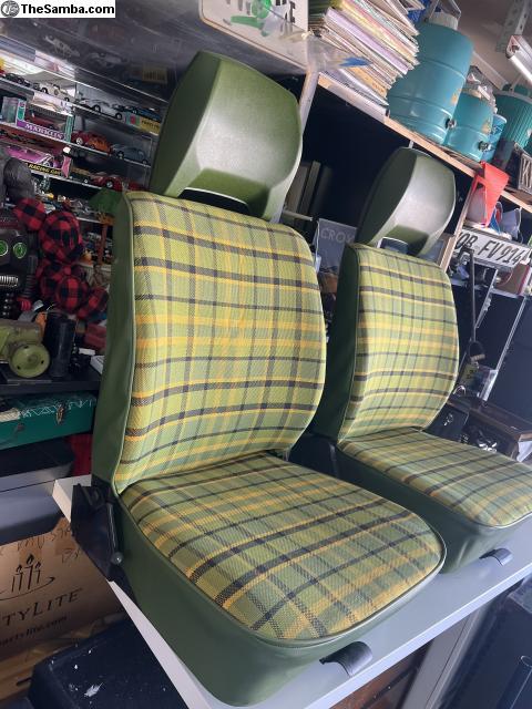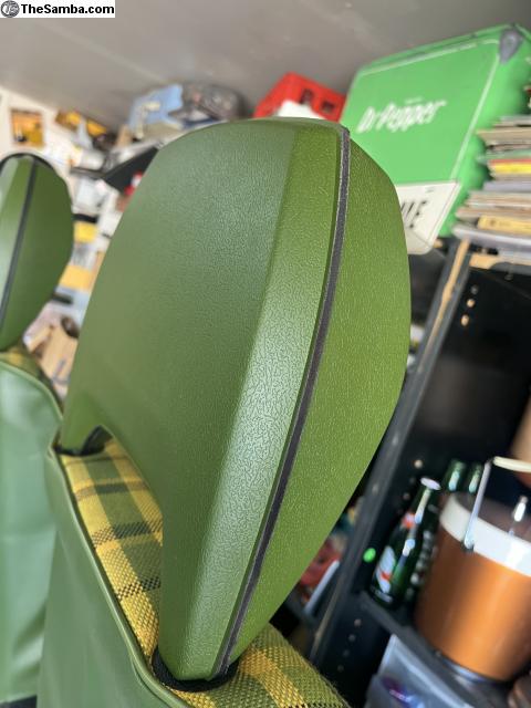 Volkswagen bus late Bay window Westfalia front seats for sale, brand-new green headrests