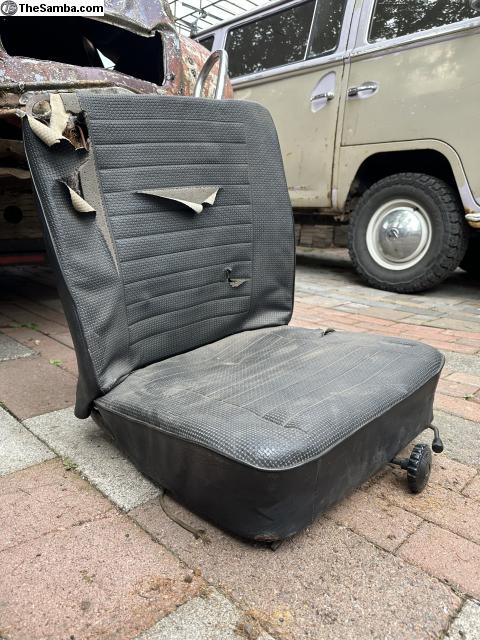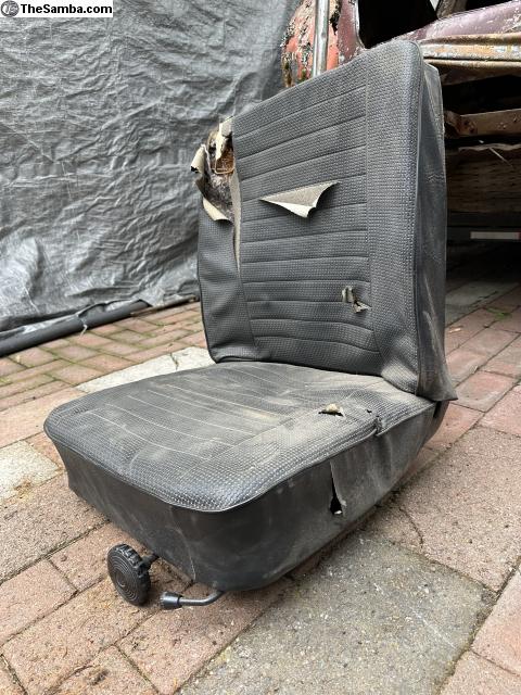 Original Volkswagen bus drivers seat in decentish usable condition. Shows a bit of age otherwise all moving parts appear to be in working order. Great for parts,parting a bus back together,restoration,repurposing or clean up and use as is. Should fit most busses 1968-1974ish???