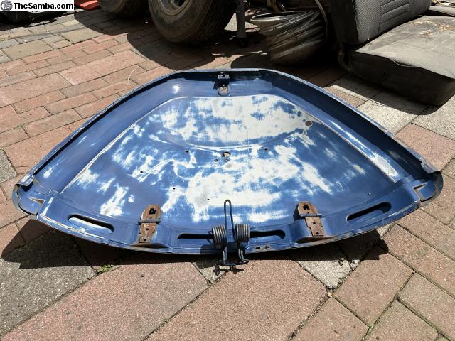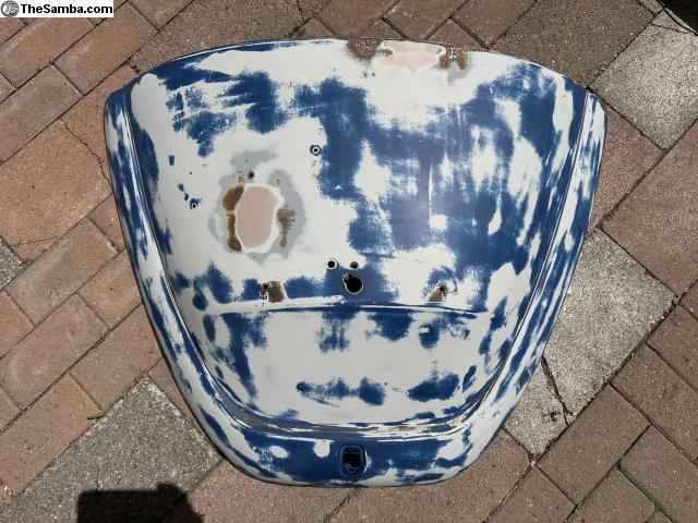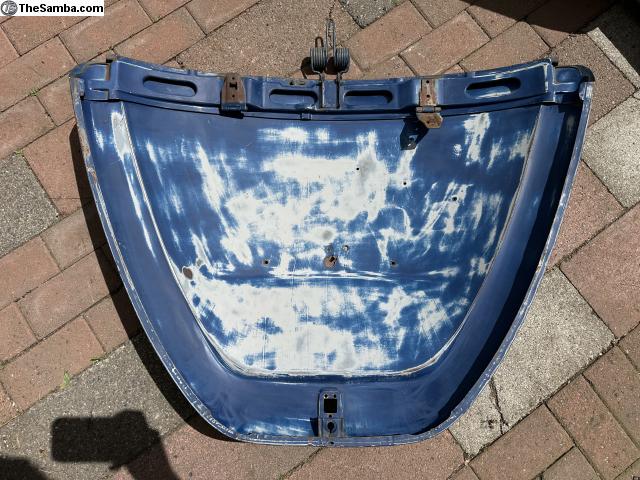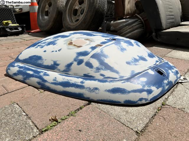 1967 Volkswagen Beetle engine lid in good usable condition. This one year only part has been partially sanded for restoration otherwise it’s in great shape with nice moving hinges. Great for restoration,rattle can and use or buff it and roll as is.