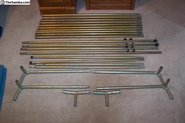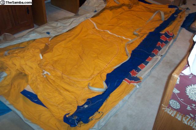 Selling my drive away Westfalia tent that I bought to use with my 71 Bus. I purchased it locally here in Tucson about 10 years ago but have never used it. It is in good condition and has a complete set of poles. The pictures show the tent, poles and bags. I opened the tent up when I first purchased it to make sure there were no major issues, but I've never set it up and don't have pictures of it assembled. It's the typical orange and blue.