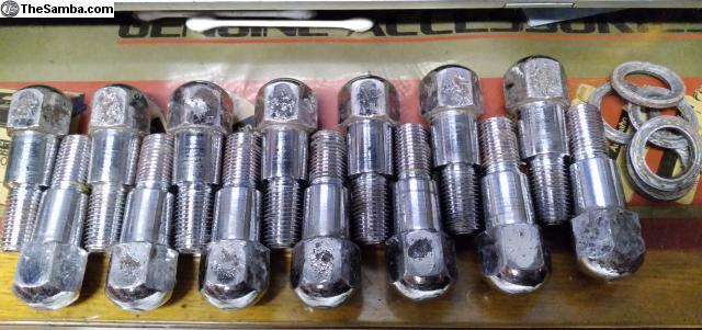 They have rust pits etc. I Only have 14 Lug Bolts. Some washers are included but you will need new ones.