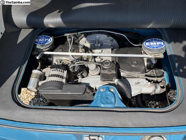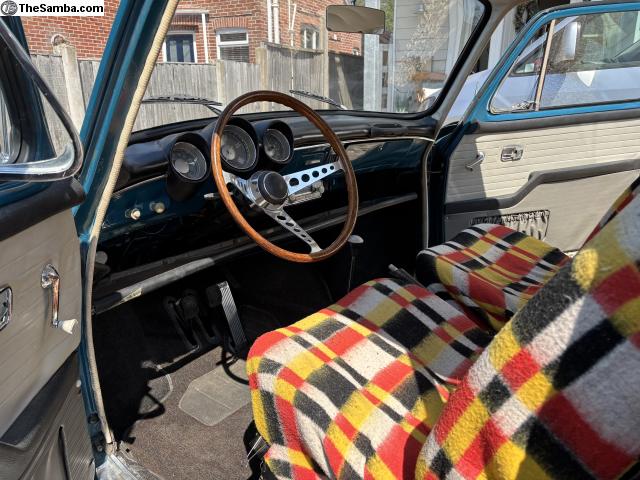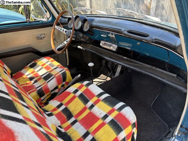1965 1500S Squareback in mostly original Sea Blue paint with amazing patina and character. Imported from Texas a few years ago she has since undergone an extensive yet sympathetic restoration in order to keep her identity and unique story, with all repairs to the body being paint blended to match her original aged persona. The body was taken off the pan to be repaired properly with the underside of the shell stone chipped and painted body colour to finish. New gerson pan half’s were fitted to the floor pan and then stone chipped underside and finished in gloss black. New rubbers and bushes throughout including a full ISP West window, door and body seal kit. Brand new suspension setup from EVARESTO consisting of a 4" narrowed beam, dropped spindles, long travel ball joints, Empi wide 5 front disc kit, bump steer kit on the front end and adjustable spring plates on the rear. The gearbox has been fitted with early beetle short axles to allow for fatter tyres to be fitted. Strong running 1600 motor with twin empi 34 carbs, 009 distributor, alternator conversion and home built stainless steel tuck away style exhaust. Interior consists of original door panels, new headliner, new load bed rubber mat and full carpet set. The seats are currently wrapped in original 60’s blankets as the original covers were trashed unfortunately but feel they are in keeping with the style of the car. There is an original speedwell steering wheel and new correct shape dash top to finish the dash of nicely. There’s also a parcel tray underneath the dash. Wheels are American racing mag copies with the fronts being narrowed to 4". Original 60’s roof rack that’s been modified to fit the car.